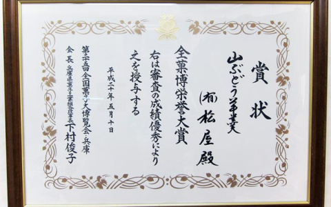名物の山ぶどう羊羹は全菓博栄誉大賞を受賞しました。